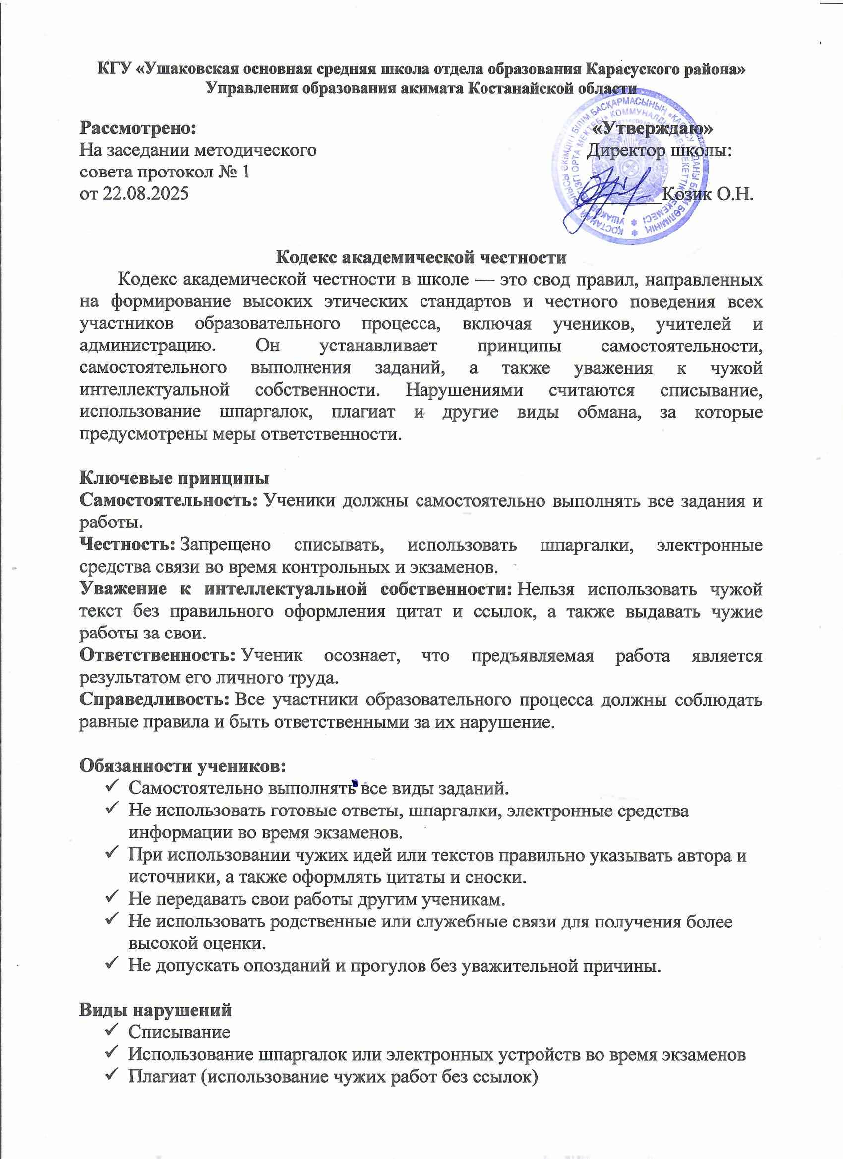КГУ "Ушаковская основная средняя школа отдела образования Карасуского района" Управления образования акимата Костанайской области